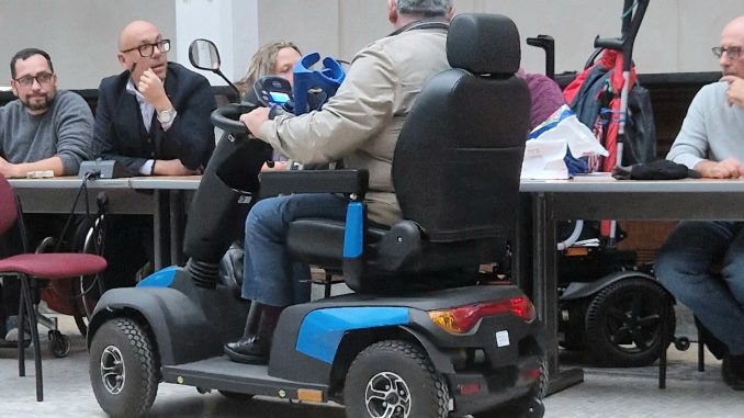 Alla riunione, oltre a vari responsabili di associazioni che tutelano gli interessi delle persone con disabilità, era presente anche una nutrita delegazione dell’esecutivo di Palazzo Civico, gli assessori Gabriella Nardelli, Jacopo Rosatelli e Francesco Tresso, poiché il tema dell’eliminazione delle barriere architettoniche – o per meglio dire, dell’accessibilità degli spazi, luoghi e uffici pubblici della città, è trasversale a gran parte delle competenze suddivise nella Giunta comunale.