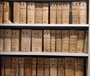 Nella fotografia al centro: Archivio storico. Gli ordinati ottocenteschi del Consiglio comunale.