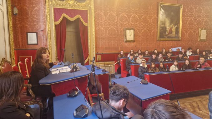 Il progetto prevede incontri a sedi alterne, Prefettura o Palazzo Civico: questa mattina, i ragazzi e le ragazze di tre classi degli istituto scolastici “Sommeiller” e “IPSIA Birago”, accompagnati da insegnanti, sono stati ricevuti in Sala Rossa. Ad accoglierli è stata la presidente del Consiglio comunale Maria Grazia Grippo, la quale, dato il benvenuto ai presenti, ha riassunto lo spirito, le finalità formative e lo sviluppo del progetto, il quale ha già coinvolto parecchie centinaia di studentesse e studenti.