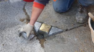 La “pietra d’inciampo” collocata oggi al civico 53 di corso Matteotti in ricordo di Luigi Jona, torinese assassinato ad Auschwitz nel 1944