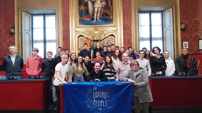 Ormai è un’abitudine ricevere studenti stranieri a Palazzo civico, ha commentato la presidente della Sala Rossa Maria Grazia Grippo davanti alla studentesca del liceo Von Humboldt di Berlino. Sedici liceali tedeschi del progetto Erasmus a Torino, impegnati in una serie di attività tra cui educazione civica – affiancati da altrettanti studenti del liceo linguistico torinese Giordano Bruno – sono stati accompagnati da una guida volontaria nelle sale ricche di storia del municipio prima di accomodarsi sui velluti cremisi solitamente appannaggio dei Consiglieri comunali. Nel fare gli onori di casa Grippo ha accolto i giovani berlinesi illustrando l’attività del Consiglio comunale di una “Torino proiettata in una dimensione internazionale sempre più aperta al mondo; chissà che un giorno non possiate lavorare nella nostra città” ha auspicato, prima di consegnare il certificato di partecipazione al periodo di mobilità Erasmus+ all’estero a ciascun partecipante. Un’occasione raccolta dagli studenti stranieri per visitare la sede per eccellenza della vita politica cittadina e stimolare anche nei ragazzi torinesi la partecipazione attiva in un periodo storico dove l’astensionismo al voto è un problema grave, come ha ricordato in chiusura la presidente dell’assemblea torinese.
