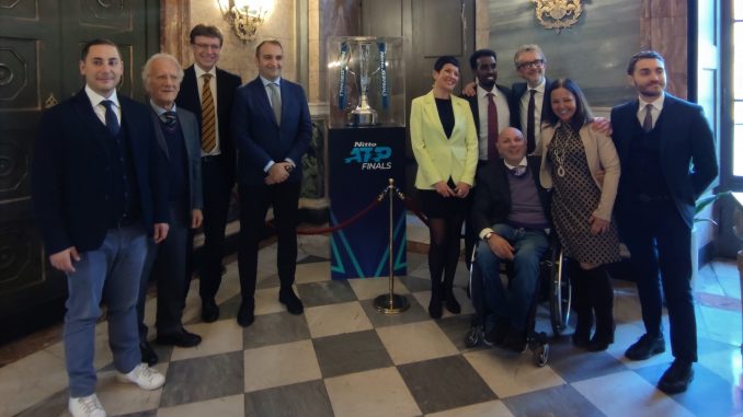 E’ arrivato a Palazzo Civico ed ora fa bella mostra di se, in Sala Marmi, il trofeo destinato al vincitore dell’edizione 2022 delle Nitto ATP Finals, il torneo che chiude la stagione del #tennis, mettendo di fronte i migliori otto giocatori del ranking mondiale. Nessun italiano presente a contendersi il trofeo, al PalAlpitour dal 13 al 20 novembre, in assenza degli infortunati Alcaraz e Zverev, ci saranno invece: Novak Djokovic, Daniil Medvedev, Stefanos Tsitsipas, Casper Ruud, Rafael Nadal, Andrey Rublev, Felix Auger-Aliassime, Taylor Fritz, mentre la prima riserva sarà Holger Rune fresco vincitore del “1000” di Parigi Bercy. Nel pomeriggio, prima dell’inizio del Consiglio comunale, i consiglieri hanno voluto dedicare un momento di attenzione alla coppa e, approfittando di una pausa dei lavori, hanno posato per una serie di foto.
