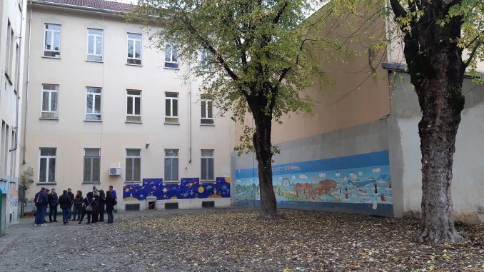 Tuttavia, il perimetro che circonda l’area, costituito dai muri della scuola e di edifici confinanti, è stato reso gradevole dai murales realizzati dagli studenti.