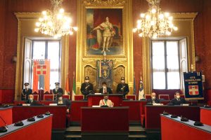 La Sala Rossa durante la cerimonia trasmessa in streaming (foto Redazione Web Città di Torino)