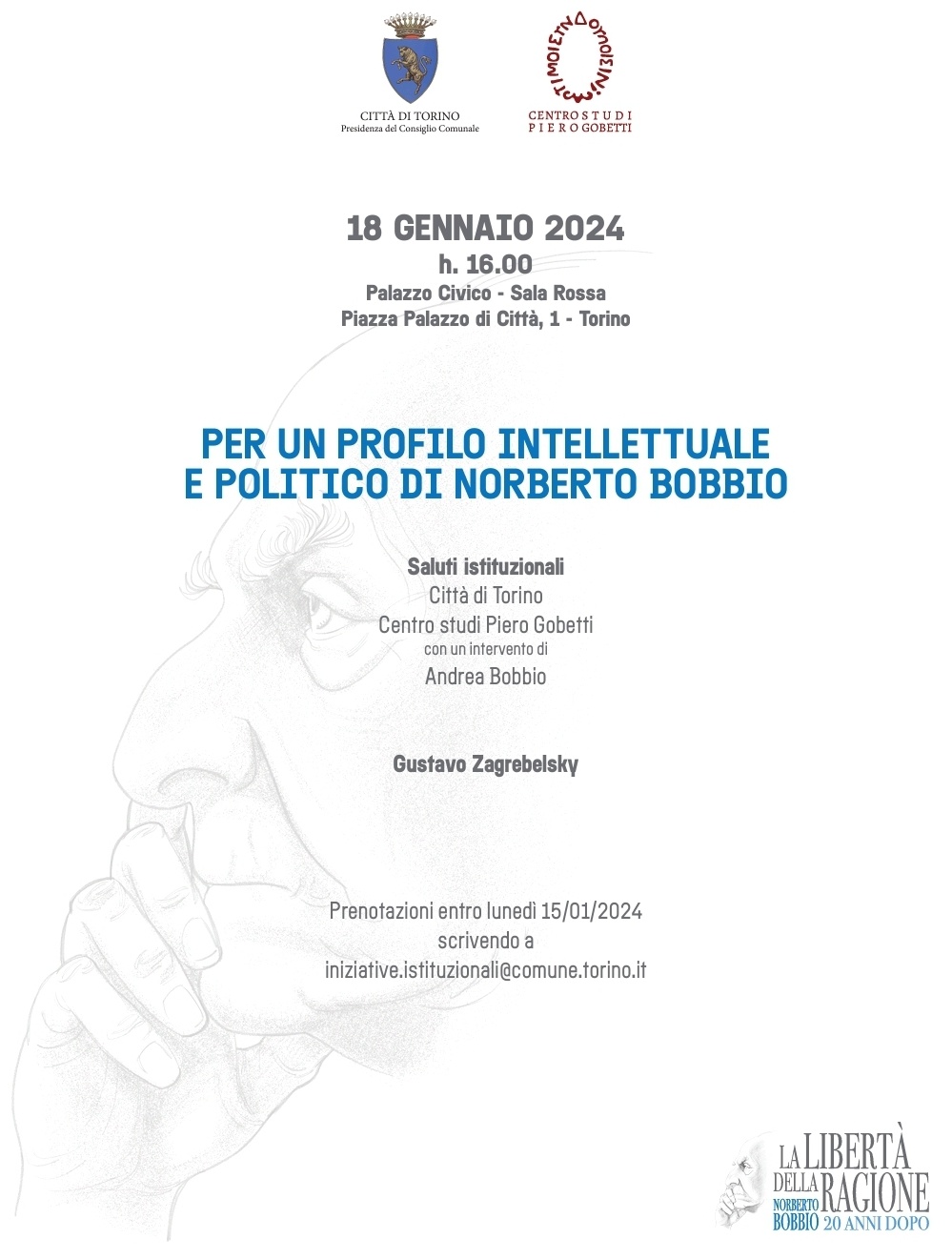 Giovedì 18 gennaio ore 16.00, in Sala Rossa, si svolgerà un incontro in ricordo del professor Norberto Bobbio, a vent’anni dalla scomparsa di colui che fu uno dei più acuti intellettuali del Novecento, con  una conferenza  di Gustavo Zagrebelsky.