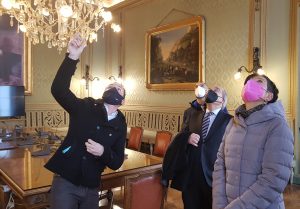La visita, condotta con la collaborazione dell’ufficio addetto alle iniziative istituzionali, si è snodata attraverso le sale auliche (oltre alla Sala Rossa, quelle delle Congregazioni e dei Marmi) fino a raggiungere il rifugio antiaereo, situato a dieci metri di profondità sotto il cortile d’onore di Palazzo Civico, realizzato nel corso della Seconda guerra mondiale e restaurato in anni recenti.