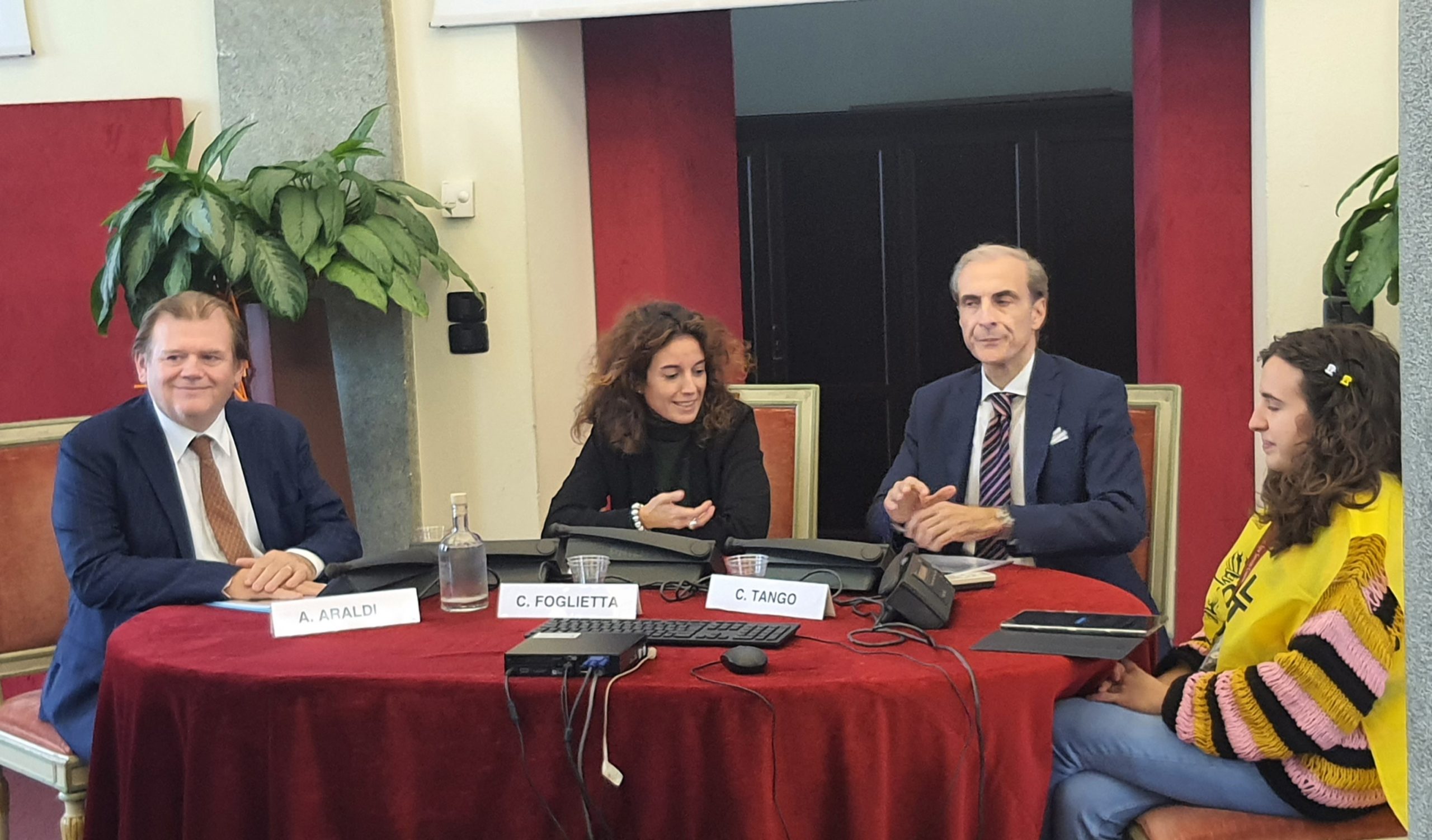 Da sinistra, il presidente di AFC, Andrea Araldi, l’assessora Chiara Foglietta, l’ad di AFC, Carlo Tango ed una delle volontarie che collaborerà durante gli eventi