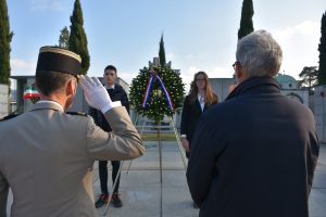 L’iniziativa di oggi ha rappresentato un omaggio ai caduti francesi al quale hanno partecipato anche ragazze e ragazzi del Lycée Francais, che hanno dato inizio alla cerimonia intonando gli inni nazionali di Francia e Italia.