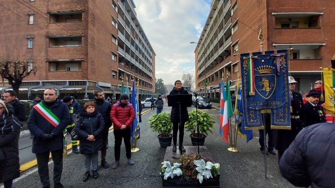 Di fronte a una folle silenziosa e commossa, Maria Grazia Grippo, presidente del Consiglio Comunale e della Commissione Toponomastica della Città di Torino, ha espresso il cordoglio dell’intera comunità torinese e ha ringraziato consigliere e consiglieri comunali per avere votato all’unanimità la proposta di apposizione della targa. Ha quindi ricordato che il lavoro dovrebbe servire per vivere, e a lungo, non per morire.