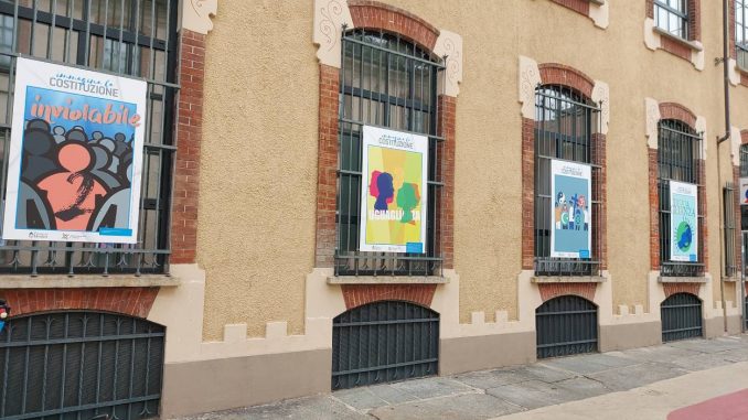 È nata così la mostra di una ventina di manifesti “Immagina la Costituzione”, allestita nell’area pedonale di via Durandi, inaugurata l’8 giugno 2022.