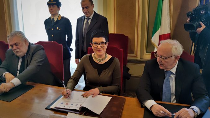 È stato siglato questa mattina, nei locali della Prefettura di piazza Castello il protocollo d’intesa sui “Nuovi cantieri di educazione civica”. Il documento è stato sottoscritto dalla presidente del Consiglio comunale Maria Grazia Grippo, dal prefetto Donato Giovanni Cafagna, dal presidente regionale dell’Ordine dei giornalisti Stefano Tallia, dalla dirigente dell’Ufficio scolastico torinese Tecla Riverso, dal Questore Vincenzo Ciarambino, dai Comandanti provinciali dell’Arma dei Carabinieri, della Guardia di Finanza e dei Vigili del Fuoco, dai dirigenti della Polizia postale, stradale e ferroviaria. I “Nuovi cantieri di educazione civica” sono un progetto che prevede momenti di formazione da tenersi a Palazzo Civico e nella sede della Prefettura, dedicati alle studentesse e agli studenti delle scuole medie superiori torinesi e della provincia che frequentano l’ultimo triennio delle scuole secondarie. Nel corso di questi incontri, verranno affrontate problematiche riguardanti il tema dell’educazione civica: la libertà di espressione e di comunicazione, diritti e doveri legati alle pratiche della partecipazione, la difesa dell’ambiente e la protezione civile, la tutela dell’ordine e della sicurezza pubblica, l’uso corretto dei social, i diritti dei cittadini stranieri. In questa prima stagione di incontri è previsto il passaggio di ottocento studenti, inaugureranno l’iniziativa gli studenti del Liceo classico D’Azeglio, in visita ai locali della Prefettura il 14 febbraio prossimo. “Ci piacerebbe diventasse un modello” ha dichiarato Maria Grazia Grippo durante la conferenza stampa che ha preceduto la firma. Nel suo intervento, la presidente del Consiglio comunale ha ricordato l’impegno personale, da quando è in carica, per ridurre la distanza anche fisica fra la cittadinanza e le istituzioni, con l’obiettivo di rimettere in circolo la voglia di partecipazione, di costruzione dal basso delle politiche per la città, che deve sempre iniziare dalla consapevolezza.
