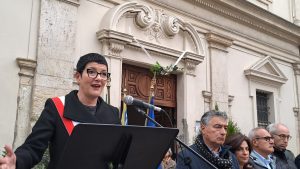 L’intervento della presidente Maria Grazia Grippo ha concluso la fase della cerimonia che ha preceduto il simbolico scoprimento della nuova targa con la denominazione ufficiale della piazza.