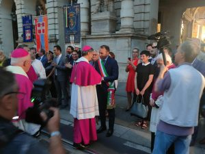I tempi sono cambiati, così come le forme della devozione, ma per migliaia di uomini e donne  sotto la Mole, la processione della Consolata, che si tiene tradizionalmente il 20 giugno, rimane un appuntamento atteso e al quale non mancare. E così, dopo due anni di pausa imposta dalla pandemia, il lunghissimo corteo con l’arcivescovo Roberto Repole  e la statua della Madonna Consolata si è snodato per le vie del centro storico, transitando come da antica consuetudine davanti a Palazzo Civico, dove sempre secondo tradizione le autorità cittadine assistono al passaggio dei fedeli e salutano i vertici della Chiesa torinese.