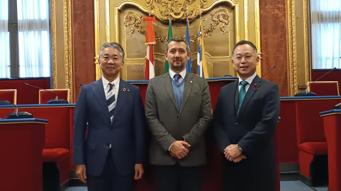 Da sinistra, il vicesindaco di Nagoya, il consigliere Claudio Cerrato, il vicepresidente del Consiglio comunale della Città giapponese