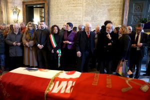 Le note di “Bella ciao”, intonata dalla centinaia di persone presenti, hanno concluso oggi pomeriggio la cerimonia di estremo saluto a Maria Grazia Sestero, svoltasi a Palazzo Civico. Un omaggio a quello che era stato solo uno dei prestigiosi incarichi rivestiti nella sua lunga carriera politico e istituzionale, quello di presidente della federazione torinese dell’Associazione Nazionale Partigiani d’Italia.
