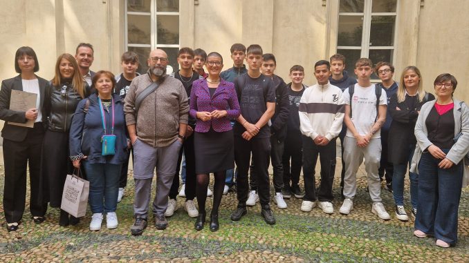 Il rifugio antiaereo di Palazzo Civico è stato oggi visitato da un gruppo di insegnanti e studenti della classe 5a D (indirizzo tecnico elettronico) dell’Istituto Primo Levi, accolti nel Cortile d’onore dalla presidente del Consiglio comunale Maria Grazia Grippo.