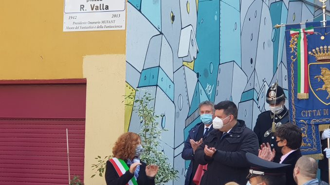 Da oggi, quella piazza sulla quale si affacciano, tra le altre, le sagome metalliche di Sailor Moon, Capitan Harlock e della Creatura del barone Frankenstein (ma anche la lapide di due partigiani caduti in combattimento) porta il nome di Riccardo Valla. Un intellettuale che non rinunciava al sogno, il quale dal 2013, parafrasando ciò che Lovecraft scriveva del mitico Cthuluh, è morto e dorme sognando.