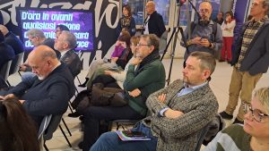 Affollatissima la sala durante la presentazione della mostra, e numerose anche le autorità presenti, con il sindaco di Grugliasco, Emanuele Gaito, la vicesindaca Michela Favaro e il consigliere Claudio Cerrato in rappresentanza della Città di Torino e del suo Consiglio comunale.
