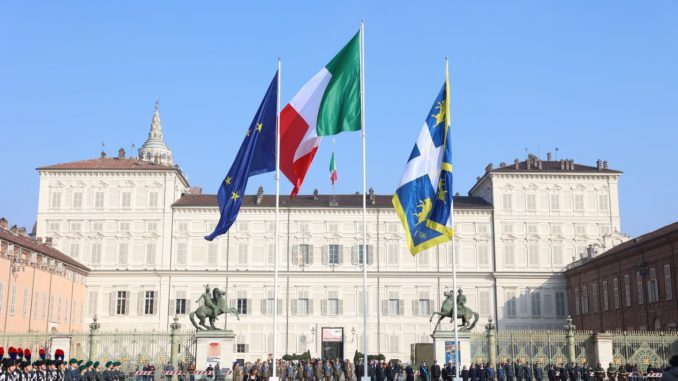 La Festa delle Forze Armate e dell’Unità Nazionale, come da tradizione è stata celebrata con la cerimonia che ha visto issare il Tricolore sui pennoni allestiti in piazza Castello, affiancato dai vessilli dell’Unione Europea e della Città di Torino.