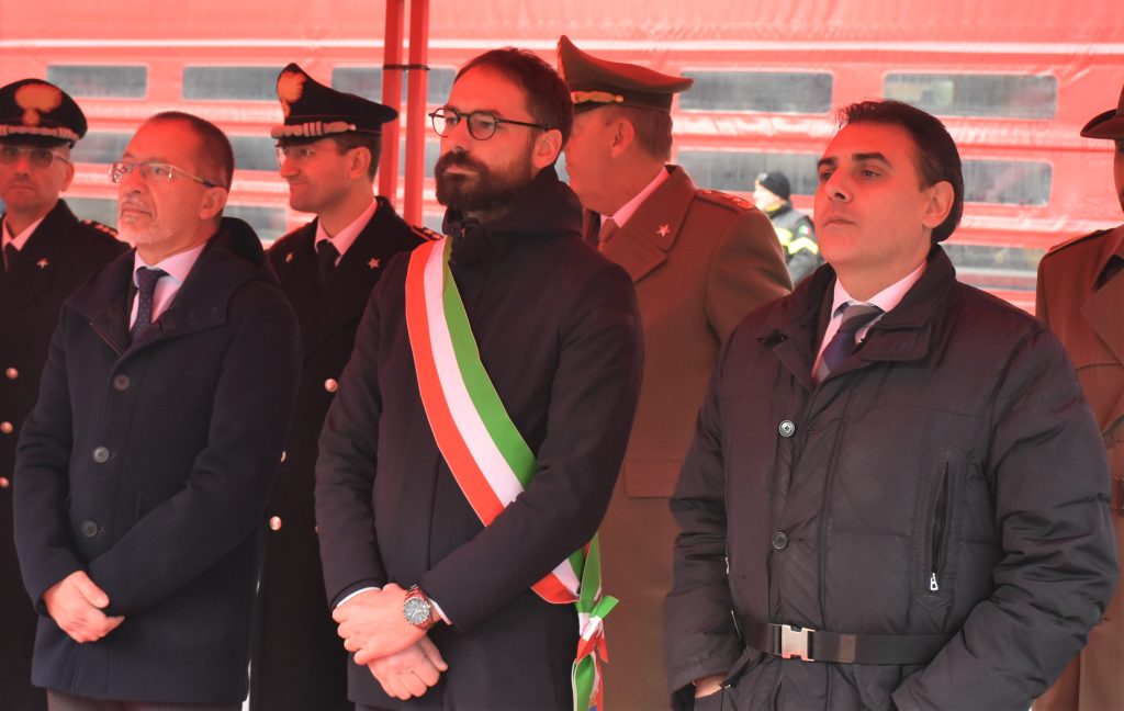 Il consigliere comunale Luca Pidello (con fascia), anch’egli vigile del fuoco, ha rappresentato la Città alla cerimonia