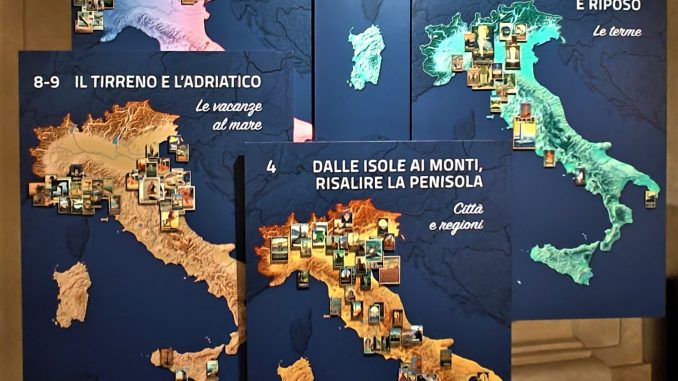 Nell’allestimento di Emilio Alberti e Mauro Zocchetta, la selezione è stata curata da Dario Cimorelli e Giovanni C.F. Villa. Ci sono opere firmate da artisti famosi, altre dall’autore sconosciuto ma, tutte, risultano evocative di un’Italia da cartolina. Un colorato e festoso giro d’Italia negli anni della trasformazione che accompagnano il Paese verso il boom economico e il turismo di massa, un nuovo modello capace di soddisfare le richieste di tutti e, non più, solo di pochi privilegiati, verso le mete rappresentate nei manifesti: il mare, la montagna, i laghi, le terme, le grandi città d’arte. All’inaugurazione di questa mattina era presente, in rappresentanza del Consiglio comunale, il capogruppo del PD, Claudio Cerrato.