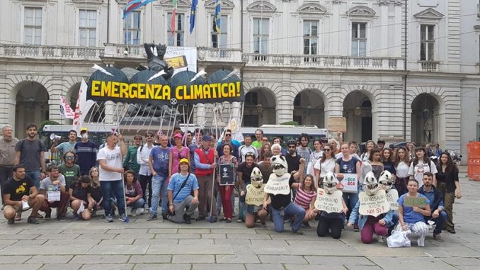 Si è svolto questo pomeriggio, davanti a Palazzo Civico, un flash mob sull’emergenza ambientale, organizzato da FridaysForFuture, LegAmbiente, GreenPeace, Centro studi Sereno Regis, Extinction Rebellion, Alberi Urbani, Medici per l’Ambiente, Comitato Acqua Pubblica e altre associazioni.