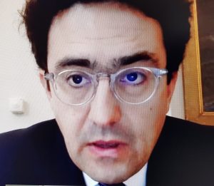 Alessandro Fusacchia durante l’incontro on line delle Commissioni consiliari
