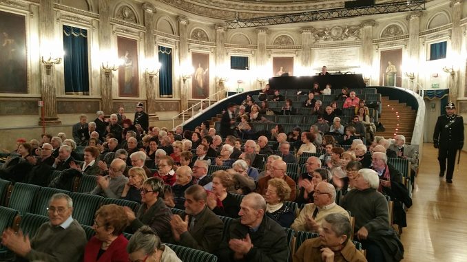 La platea del teatro Gobetti con le coppie che hanno festeggiato le Nozze d'oro