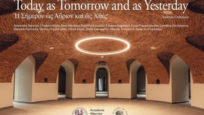 Nel suggestivo Ipogeo dell’Accademia Albertina è stata inaugurata “Today as tomorrow and as yesterday – Oggi come domani e come ieri”, una rassegna di video d’arte provenienti dall’Accademia di Belle Arti ASFA di Atene, prima tappa di una collaborazione e scambi di attività espositive fra le due Istituzioni.