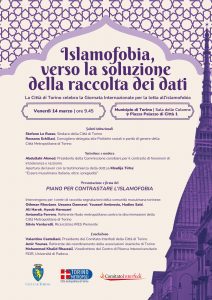 In particolare, il Piano impegna la Città a dedicare incontri per la presentazione del Report annuale delle attività di monitoraggio sulle discriminazioni a cura del gruppo di lavoro discriminazioni di IRES in collaborazione con il Nodo Metropolitano; a promuovere iniziative ed eventi da organizzare sul territorio in occasione del 15 marzo, Giornata internazionale contro l’islamofobia; a promuovere la cultura del rispetto reciproco e del dialogo dando supporto, anche attraverso campagne divulgative, per sensibilizzare sul tema delle discriminazioni religiose. Nel corso dei lavori, hanno portato il saluto delle istituzioni il sindaco Stefano Lo Russo, l’assessora Carlotta Salerno e la consigliera della Città Metropolitana Rossana Schillaci. Il convegno è poi iniziato con la testimonianza di Khadija Tirha, è proseguito con gli interventi dei responsabili dei centri di raccolta delle segnalazioni della Comunità Islamica torinese e si è concluso con il saluto di Valentino Castellani, presidente del Comitato Interfedi; Amir Younes del Coordinamento Associazioni islamiche; Mohammed Khalid Rhazzali dell’Università di Padova. Conoscenza, dialogo e rappresentanza sono le tre parole chiave ribadite dalle testimonianze portate durante il convegno, che hanno sottolineato l’importanza di abbattere i muri e sconfiggere le paure e i pregiudizi, in particolare nelle scuole, per favorire il dialogo interreligioso e interculturale. Partendo dal presupposto che chi si conosce si rispetta. Nel concludere i lavori del convegno, Abdullahi Ahmed ha richiamato l’attenzione sull’iniziativa della Città “Moschee aperte – spazio per tutti” che, domani pomeriggio dalle 14,30 alle 17,30 permetterà la visita al loro interno. #Islam