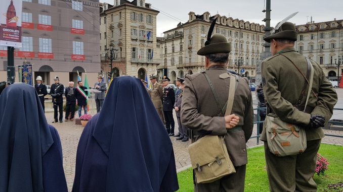 A pochi giorni dal centenario dell’armistizio tra Italia e Austria-Ungheria, che segnò la conclusione della Prima Guerra Mondiale sul fronte del Piave, autorità civili e militari hanno oggi inaugurato, in piazza Castello, una targa metallica in ricordo dei circa 5000 torinesi caduti nel conflitto. La targa è stata posizionata, a cura della Città di Torino in collaborazione con AssoArma, presso il monumento a Emanuele Filiberto duca d’Aosta, sul lato della piazza rivolto verso via Po. Torino la sua provincia pagarono a caro prezzo il loro contributo alla guerra, con un totale di circa quattordicimila morti, oltre a decine di migliaia di feriti e mutilati.